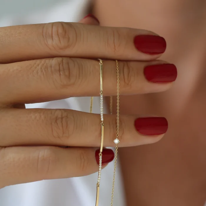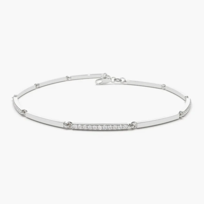 Elevate your jewelry with the beautiful 14K Solid Gold Pave Lab-Grown Diamond Bar Bracelet. This breathtaking piece flaunts a slender design full of pave-set lab-grown diamonds which catch lights beautifully. Handcrafted with premium 14K gold, this piece is bound to be your go-to for both everyday and special events. The complex diamond arrangement ensures that the fire of every stone is released, infusing an added touch of sophistication into any piece.