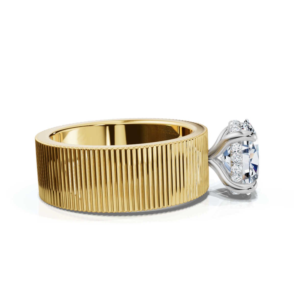 14K Solid Gold Ribbed Moissanite Diamond Engagement Ring