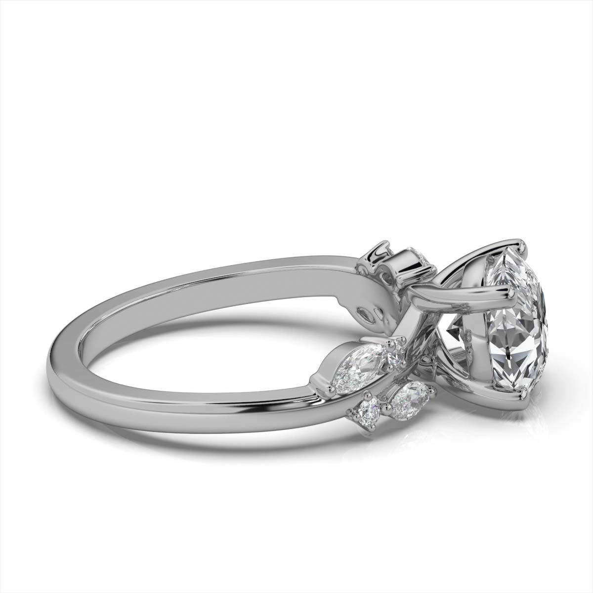 - Side Stones: 8 Moissanite Diamonds (Round & Marquise, 0.46ct total)