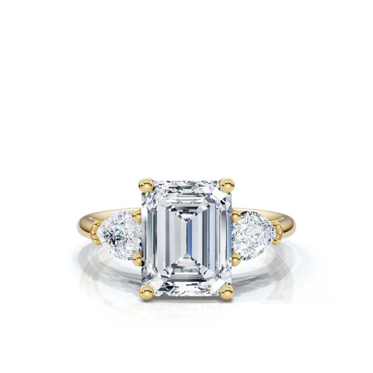 14K Solid Gold Three Stone Pear Moissanite Diamond Engagement Ring