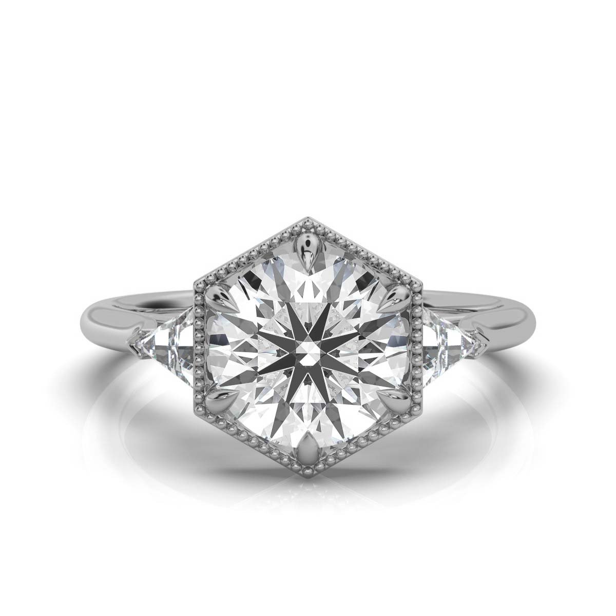 - Side Stones: Moissanite Diamonds (Trillion, 0.36 ctw, D color, VVS1 clarity)