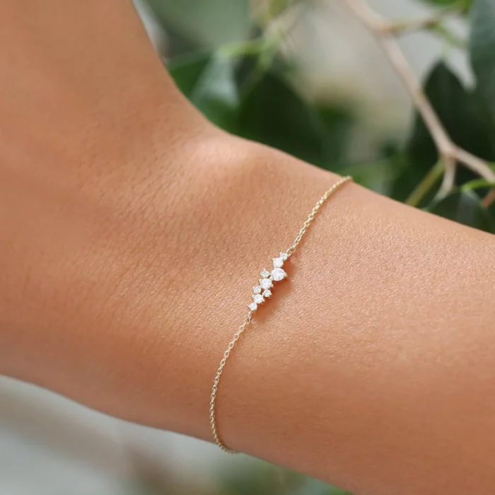 This exquisite piece is crafted from premium 14K gold, showing off a stunning cluster of lab-grown diamonds that radiate brilliance and elegance. The VS clarity and F color of the diamonds ensure a captivating sparkle, making this bracelet perfect for special occasions or everyday wear.