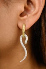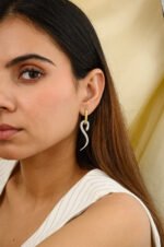 Elegant 14K solid gold serpentine earrings adorned with shimmering diamonds—sophisticated curves meet timeless sparkle for a bold, graceful look.
