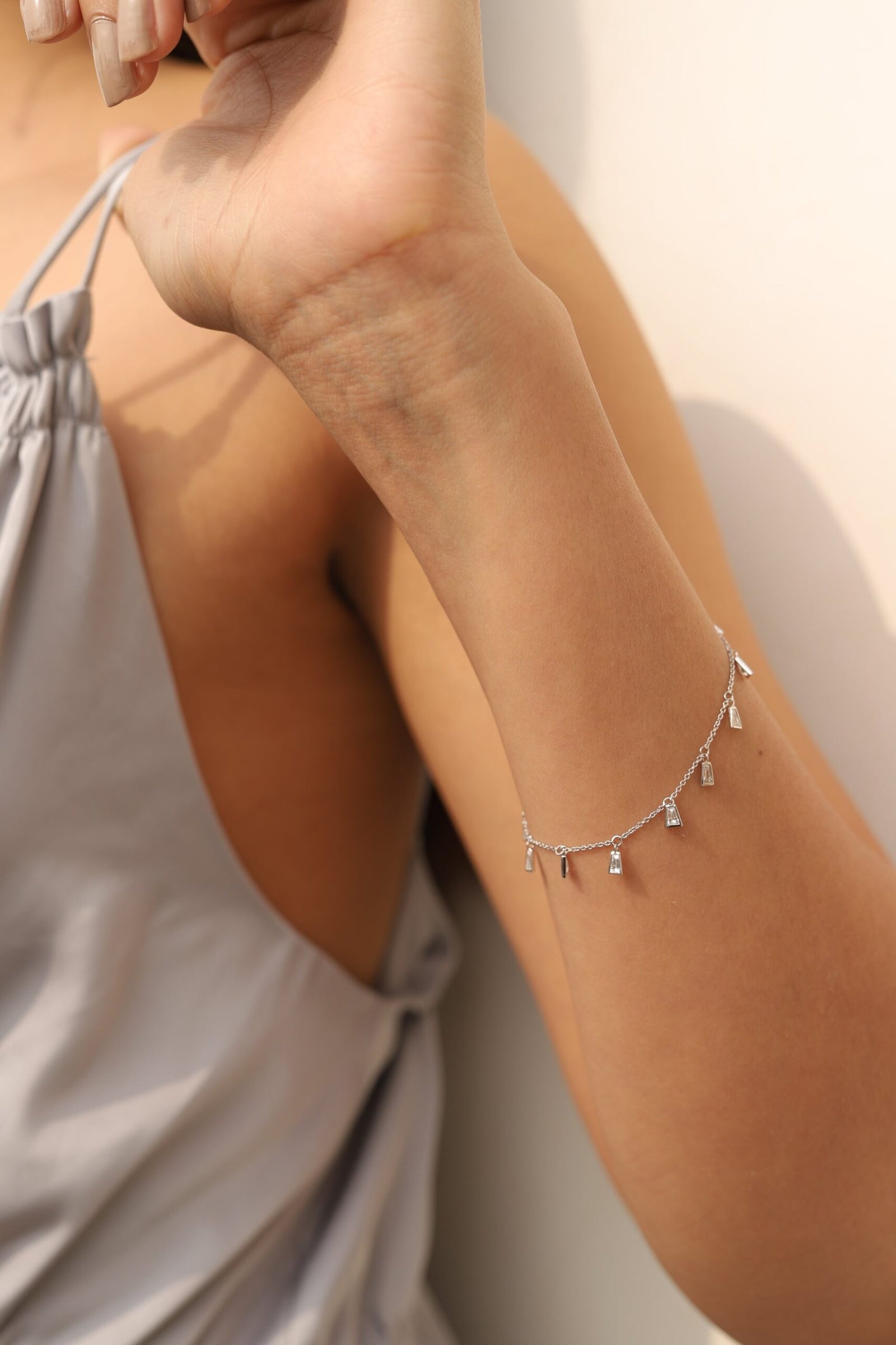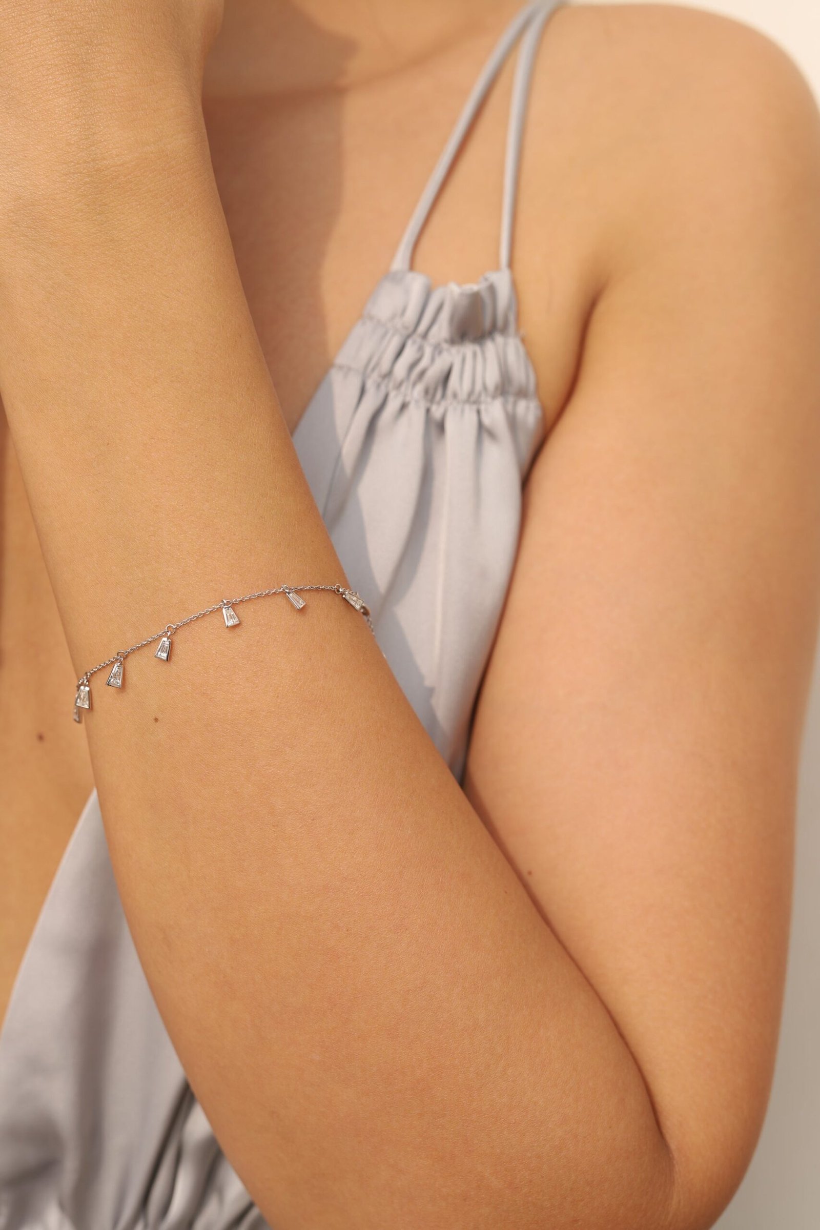 Crafted from 14K solid white gold, the bracelet has a bright, cool luster that perfectly complements the diamonds’ clarity and brilliance. The bezel setting ensures that each diamond is securely held while allowing maximum light to pass through, amplifying their sparkle. This setting also provides a sleek and smooth appearance, adding to the bracelet’s overall elegance.