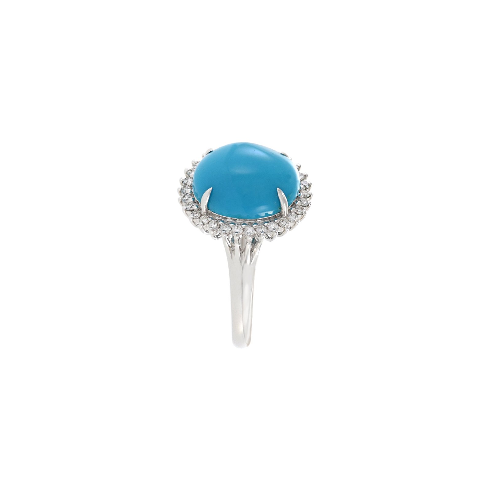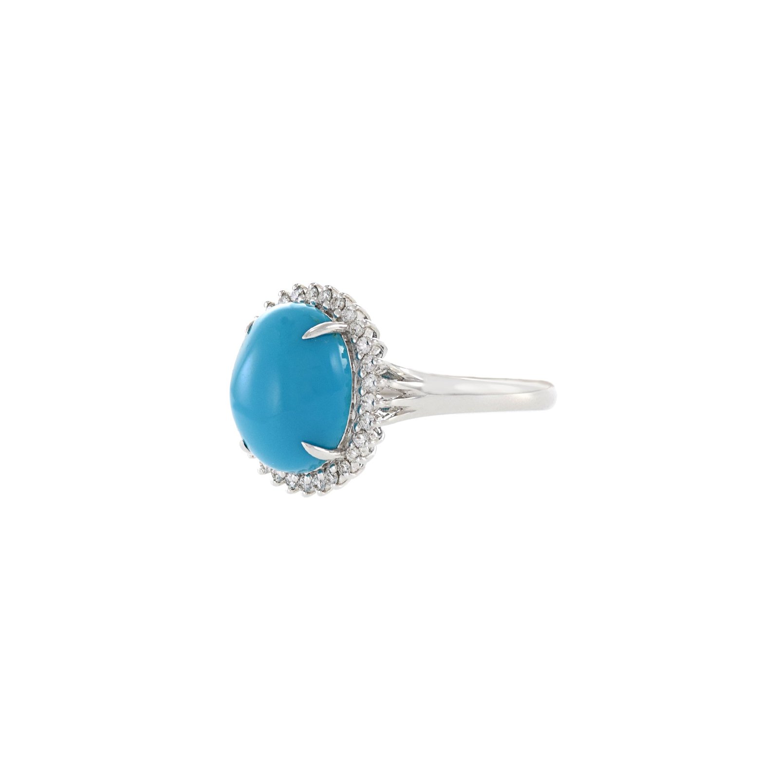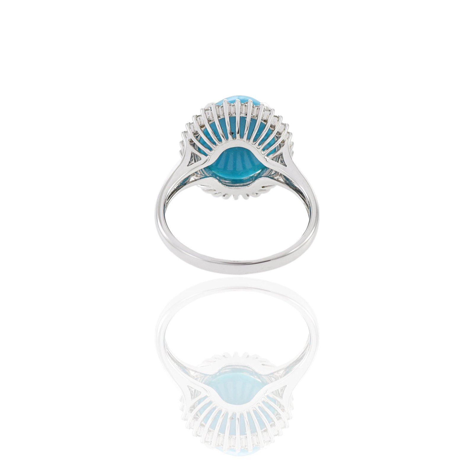 The turquoise is elegantly paired with sparkling diamonds, set carefully to maximize their brilliance and create a touch of luxurious sparkle.
