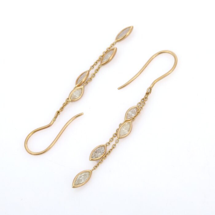 Weighing 1.344 grams, the earrings are lightweight yet substantial enough to make a statement. The combination of marquise diamonds and yellow gold creates a refined and chic accessory that is versatile enough for both formal occasions and everyday wear. The elegant design ensures the earrings will remain a cherished part of your collection for years to come.