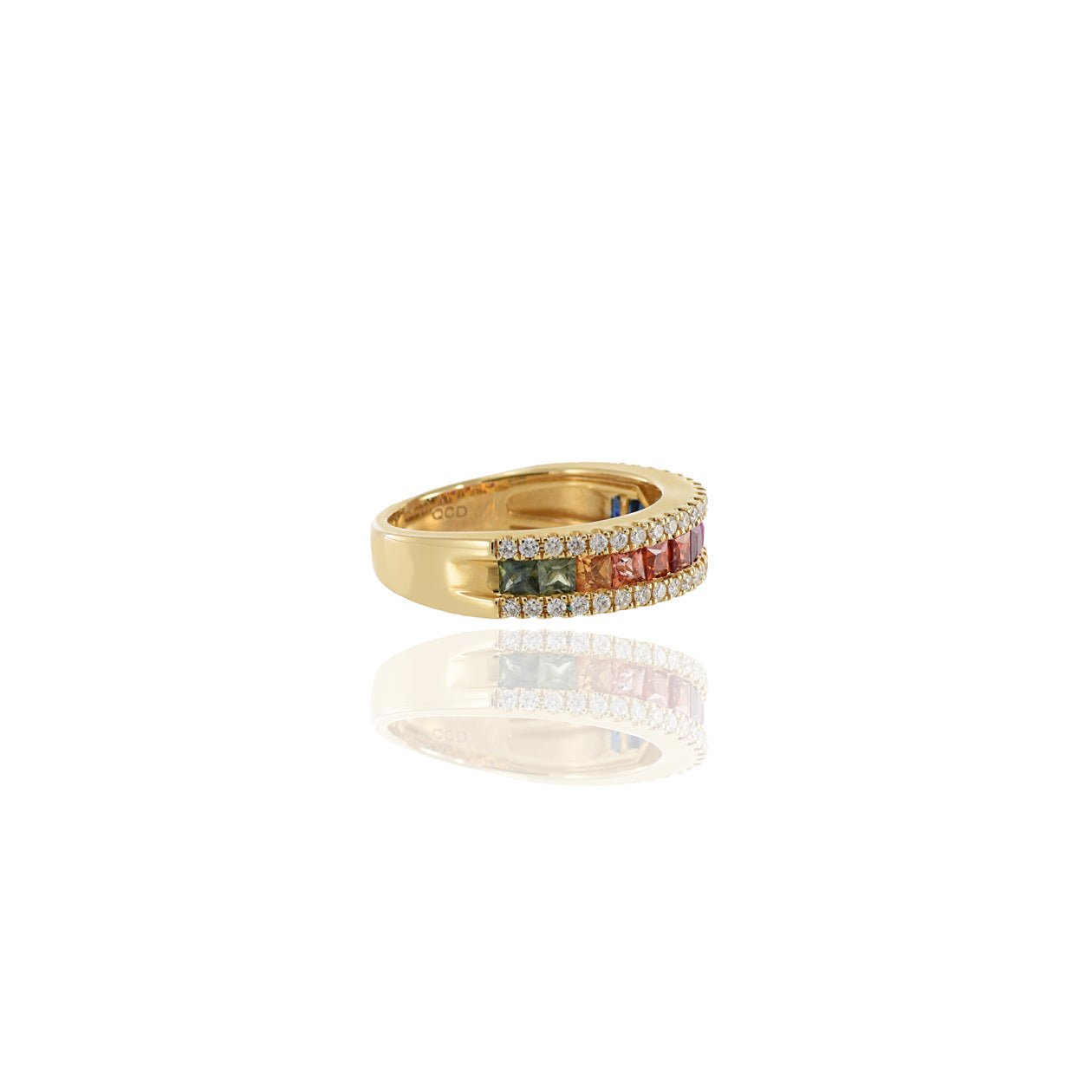 Elegant 14K solid gold band featuring multi-colored sapphires and sparkling diamonds—crafted for vibrant charm and timeless sophistication.