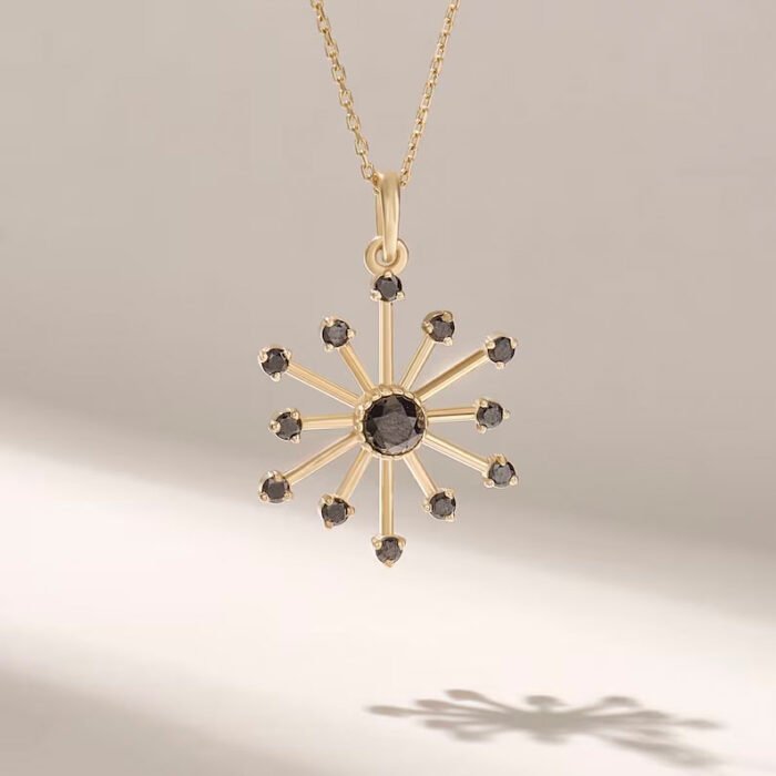 - Product Name: 18k Gold Black Diamond Starburst Necklace: Unique North Star Pendant