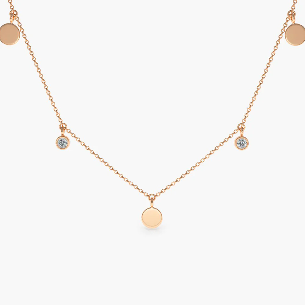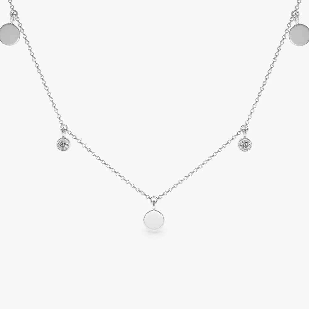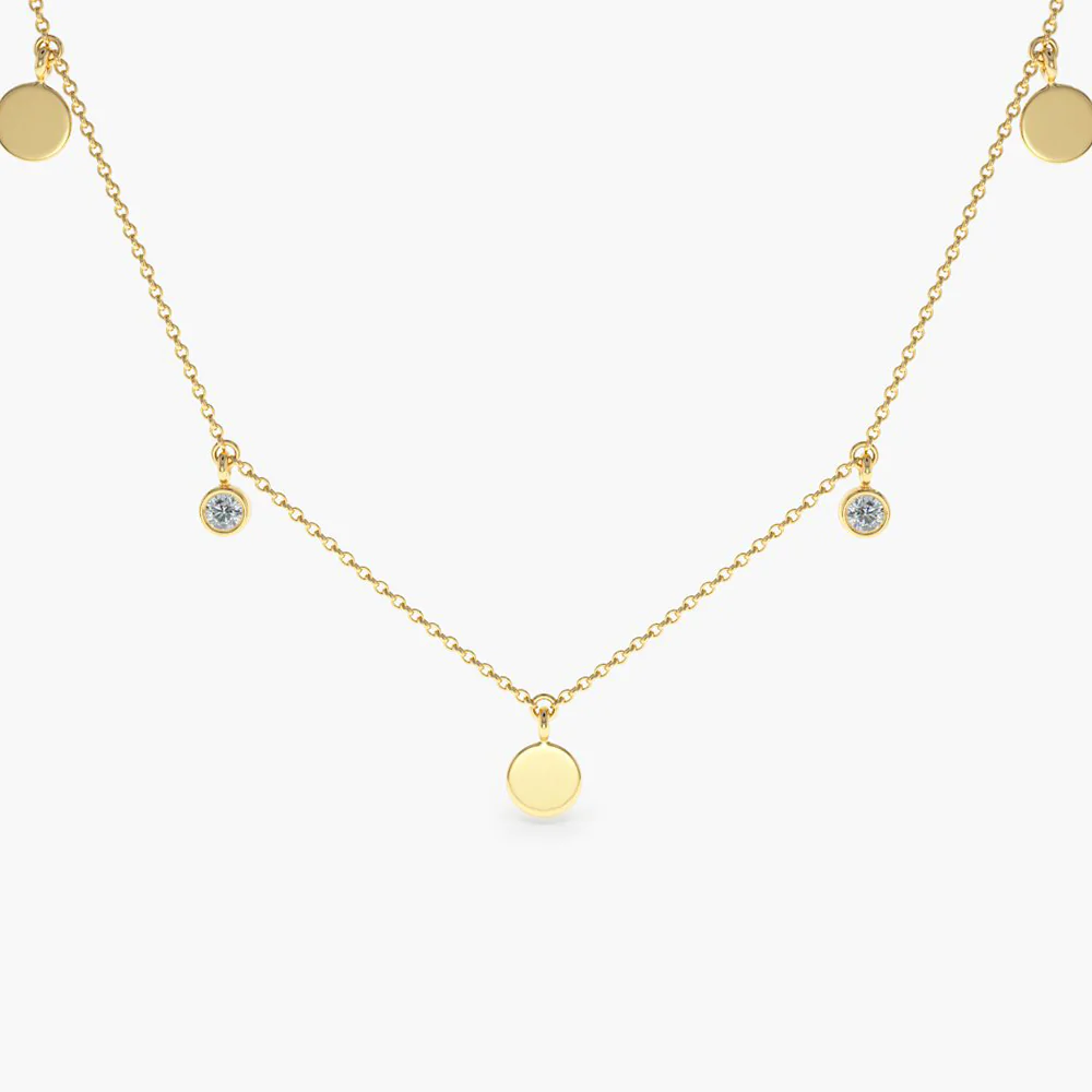 Being hallmarked with BIS ensures quality and authenticity in this outstanding piece. Give your jewelry collection a high end look with the Dangling Diamond Disc Necklace, which embodies pure style and elegance.