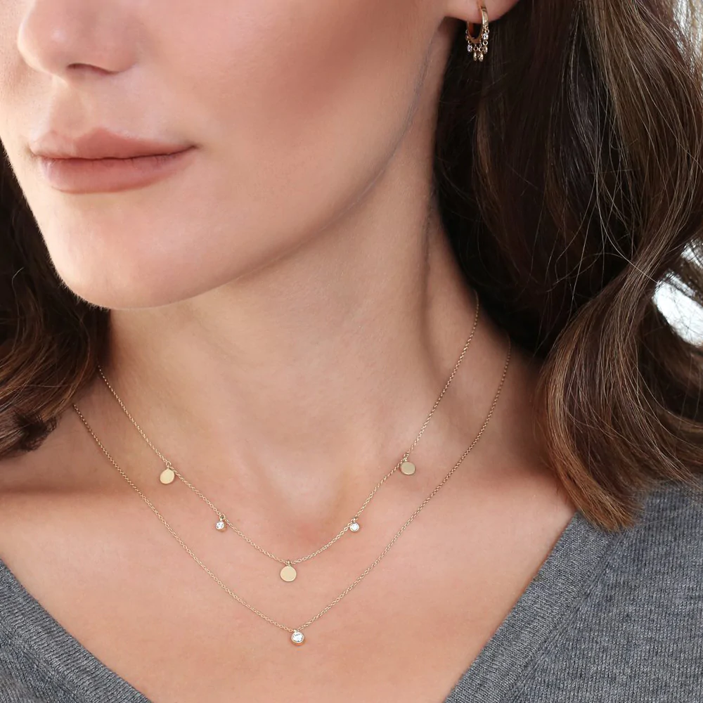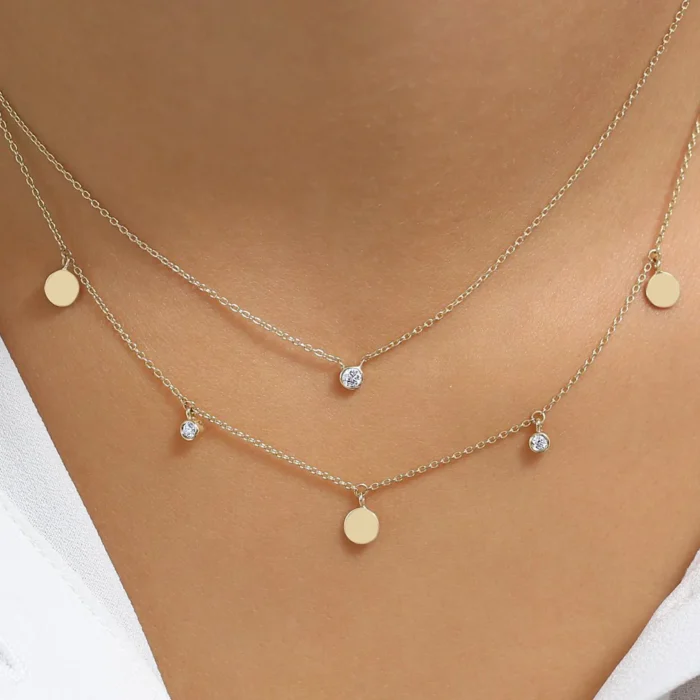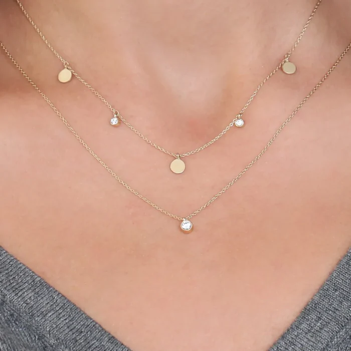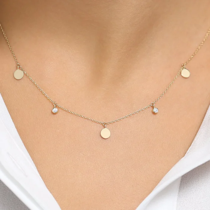 - Product Name: 18k Gold Dangling Diamond Disc Necklace