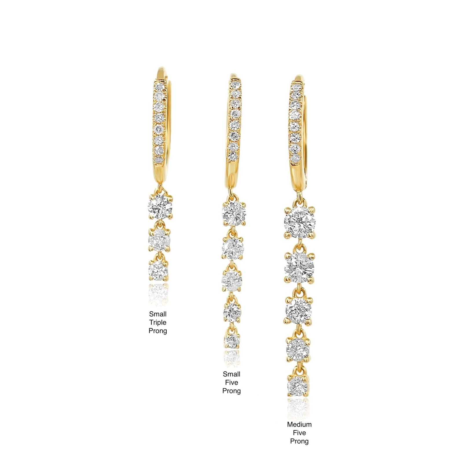 18k Gold Five Graduated Prong Moissanite Diamond Hoop Earrings