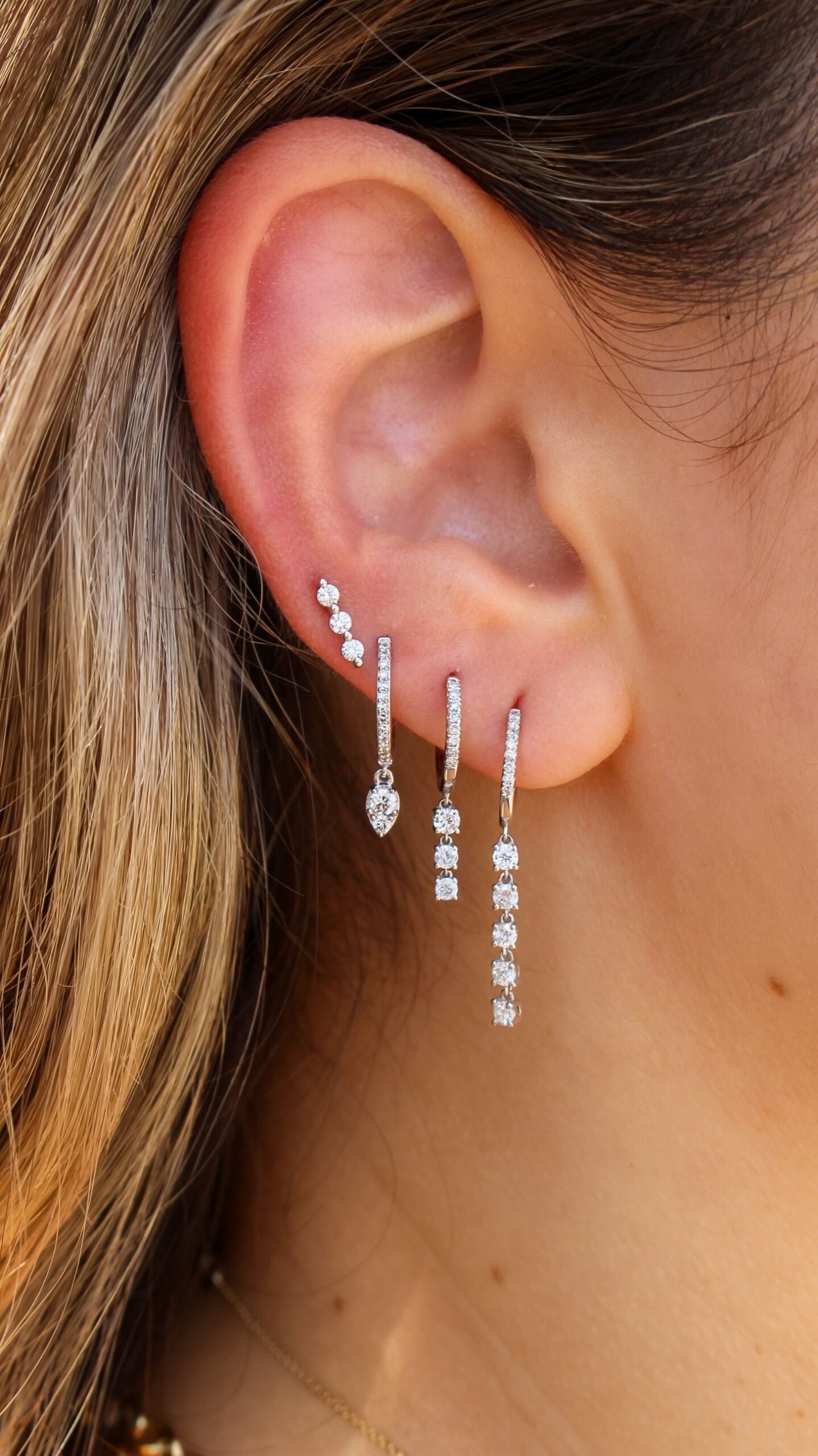 - Design: Hoop earrings with graduated moissanite diamond prong setting