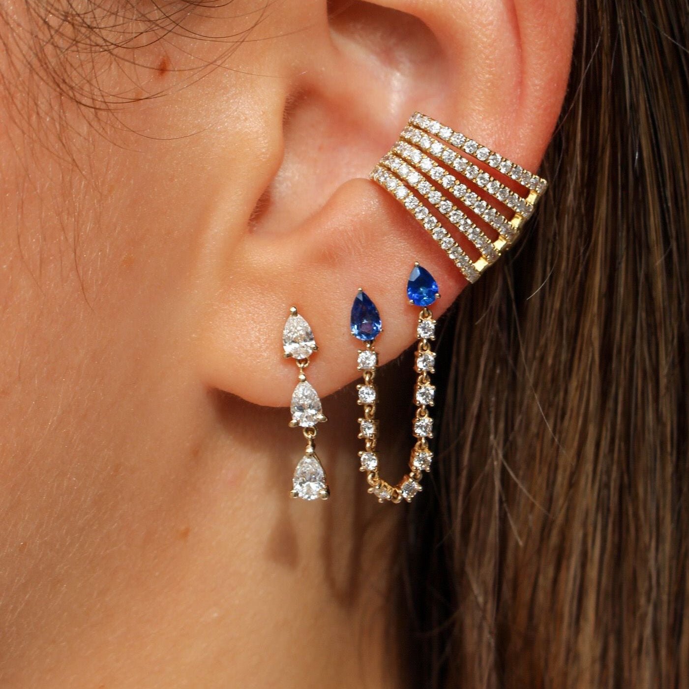 18k Gold Moissanite Diamond Triple Prong Pear Earring