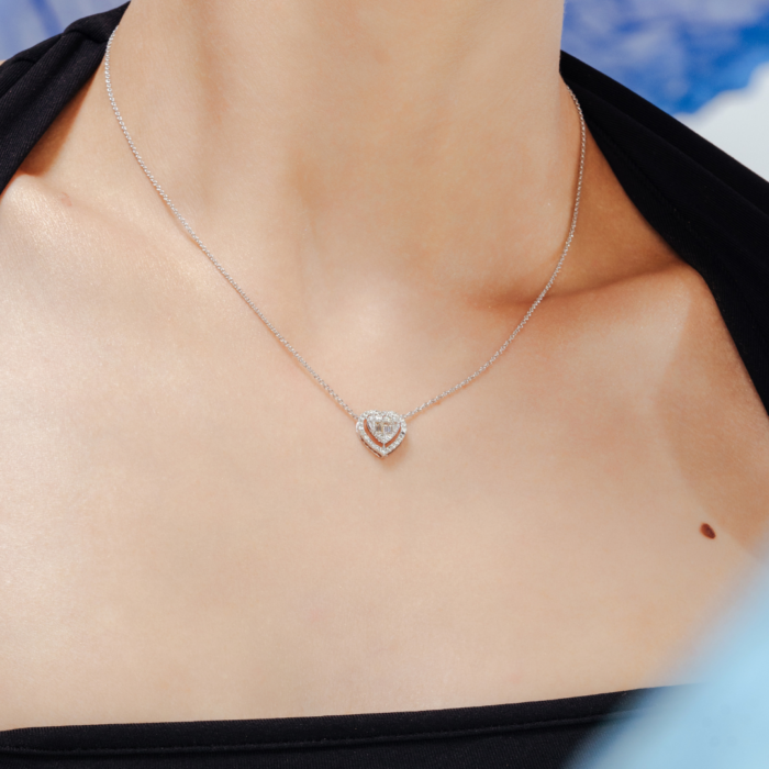 The heart-shaped pendant adds a touch of romance and elegance, making this necklace an ideal choice for those who appreciate fine craftsmanship and luxurious jewelry designs.