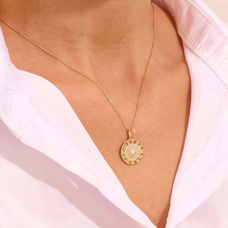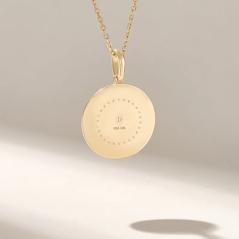 Be the first to review “18k Gold Natural Diamond Horoscope Pendant Necklace: Engraved Medallion Charm” Cancel reply