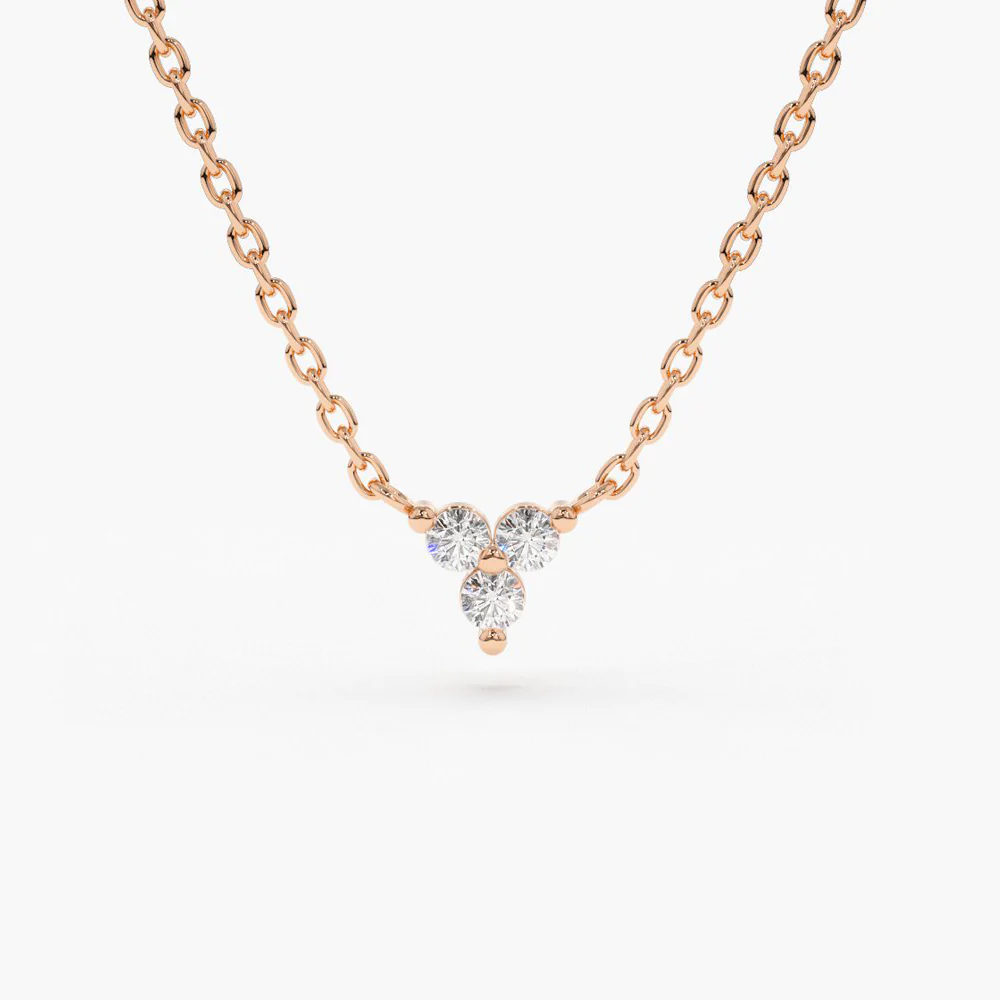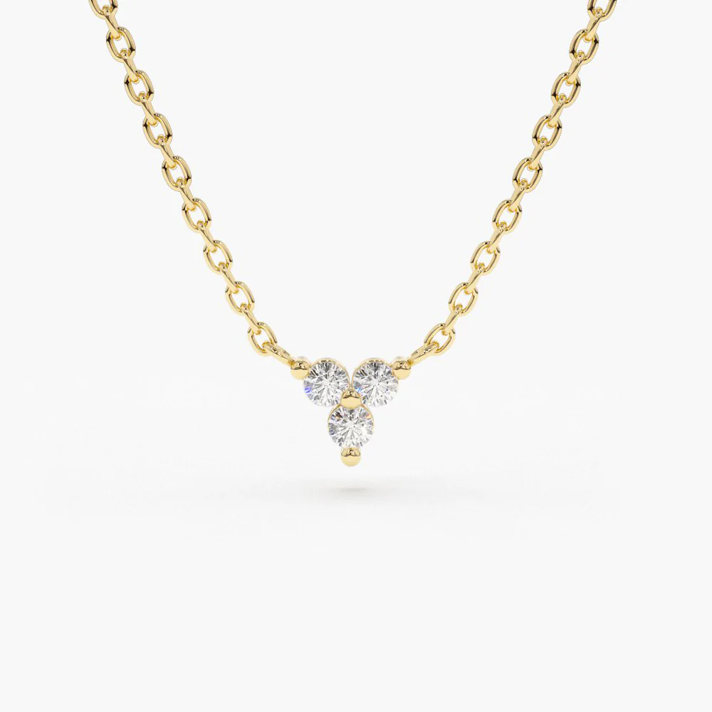 18k Gold Round Cut Natural Diamond Trio Necklace