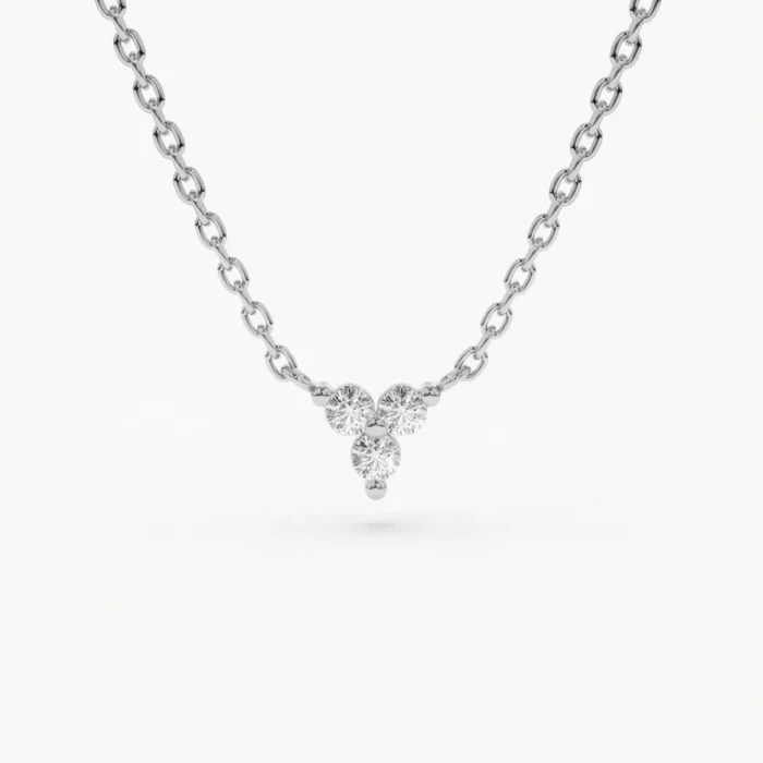 In secure prong settings, the diamonds are presented very elegantly so that there’s a maximum exposure to light. Great for both daily wear and for special occasions, this round cut diamond trio necklace brings that little bit of elegance and charm to an outfit.