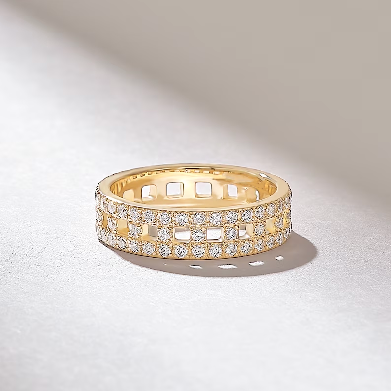 18k Open Squares Pave Wedding Band: Iced Out Diamond Full Eternity Matching Band