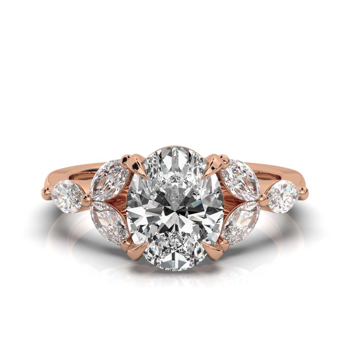 - Center Stone: Oval Moissanite Diamond