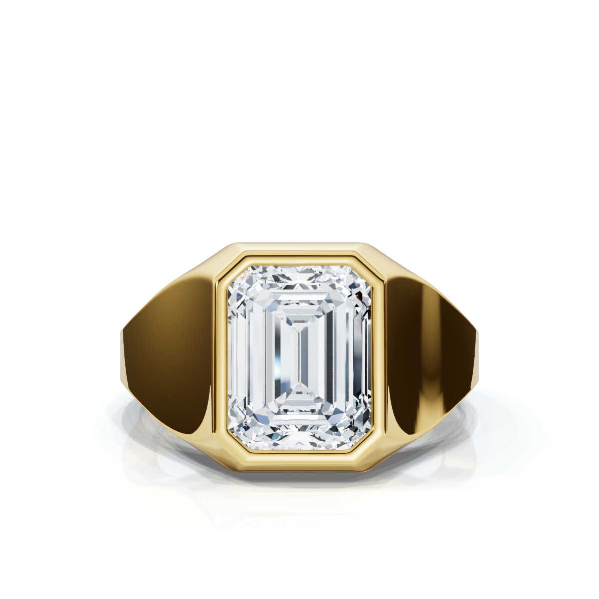 A 18k Solid Gold 2ct Emerald Cut Lab Grown Diamond Ring, featuring a stunning 2ct emerald-cut diamond set on a sleek gold band for timeless elegance.