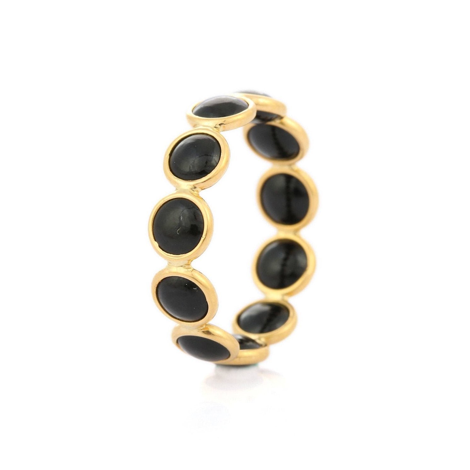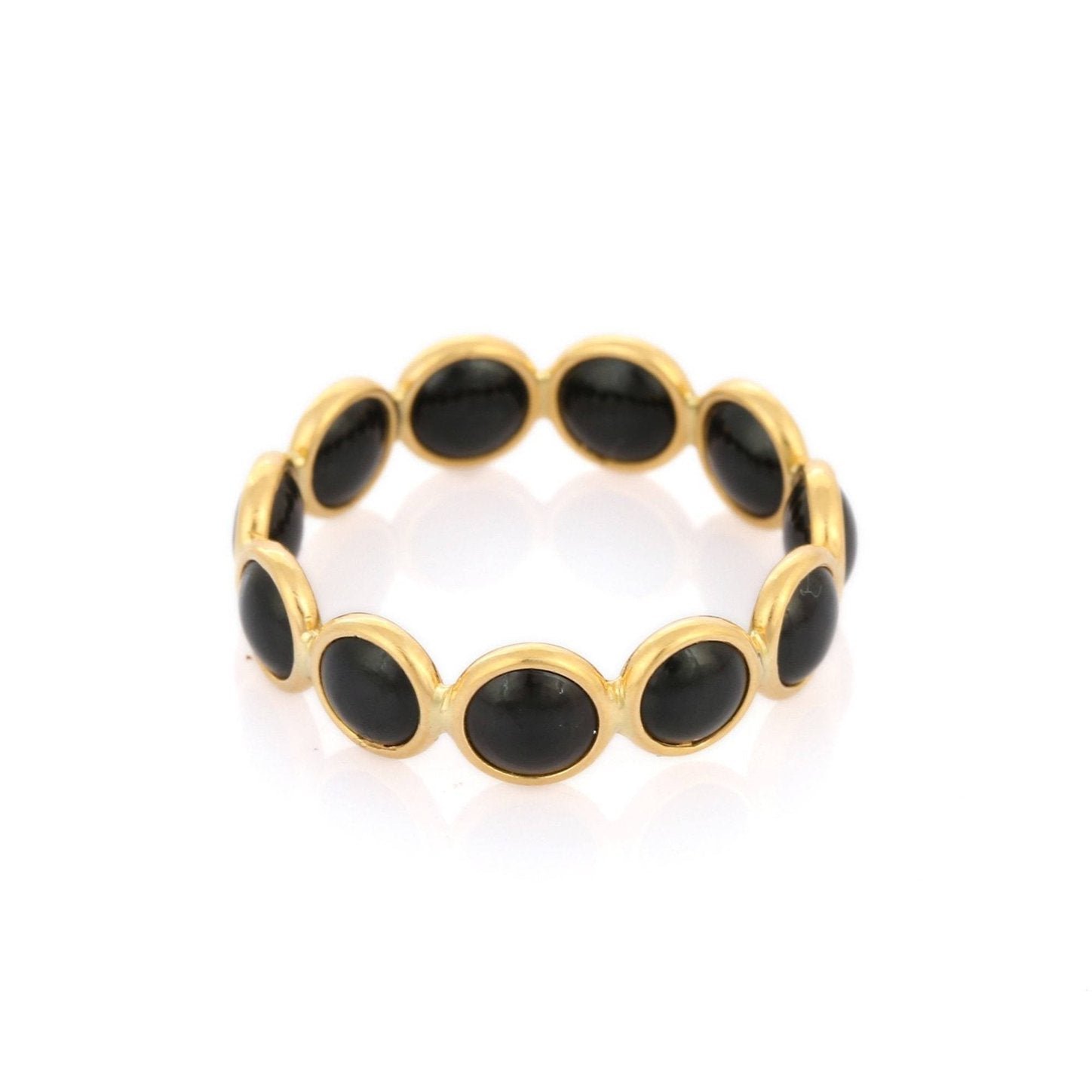 A sleek 18k solid gold eternity band featuring black onyx stones, offering a bold and elegant design perfect for any occasion.