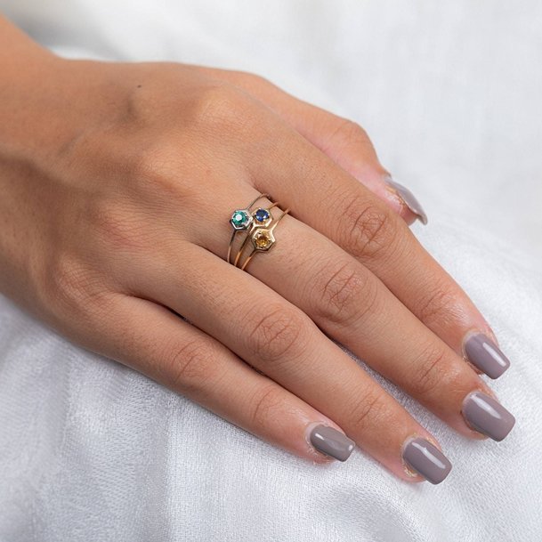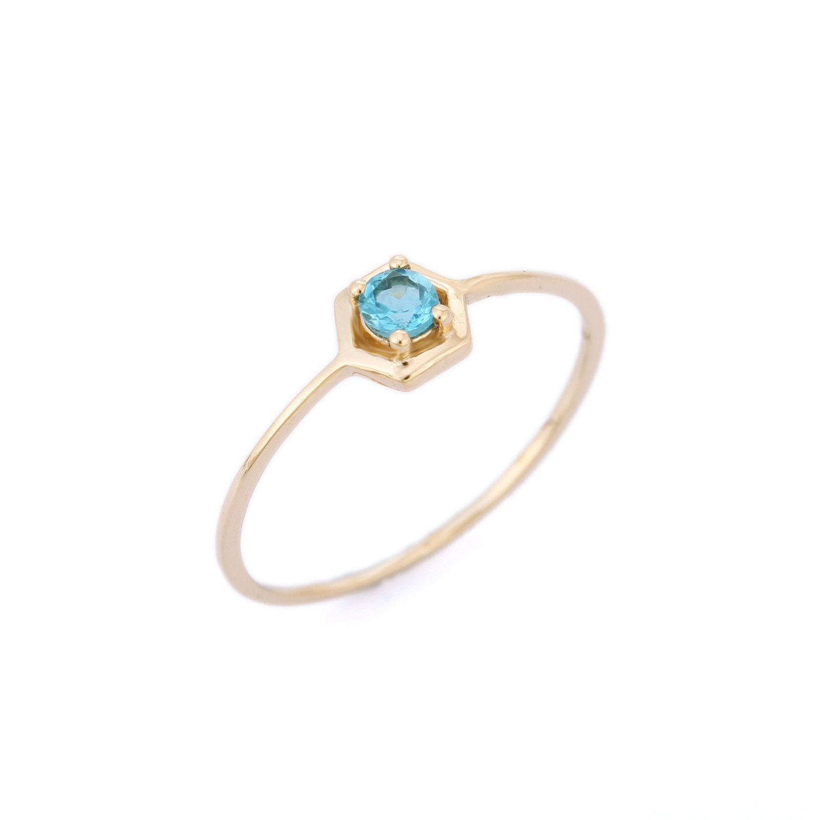 Elegant 18k solid gold ring featuring a sparkling blue topaz. A serene and stylish piece that adds a refreshing pop of color to your look.