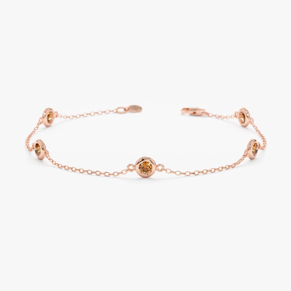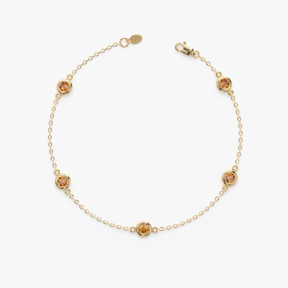 Adorn your wrist with our Citrine Station Bracelet, showcasing sparkling citrine gemstones set in solid gold for a touch of warmth and elegance.