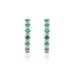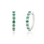 Weighing 9.65 grams, these designer hoops offer a substantial yet comfortable feel, making them ideal for everyday wear or special occasions. Measuring 34.27 mm in length and 4.65 mm in width, the hoops are designed to sit elegantly on the ears, adding a touch of luxury to any outfit. The elegant design ensures that the emeralds and diamonds remain the focal points, allowing their beauty to shine through.