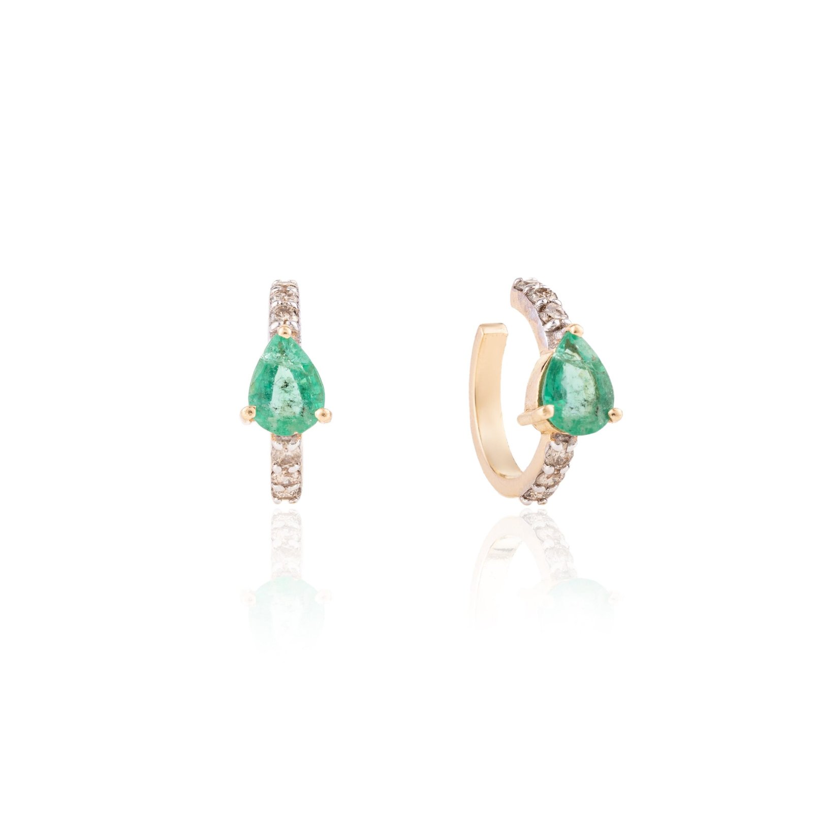 Be the first to review “18k Solid Gold Emerald Diamond Helix Cuff Earrings”
