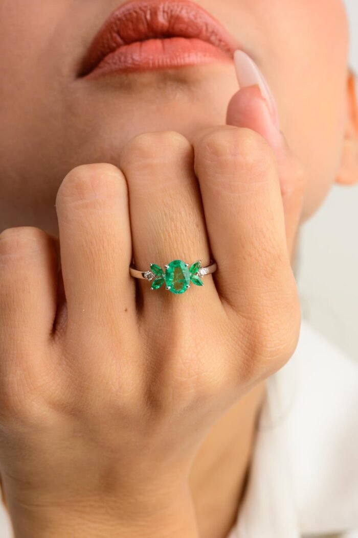 Whether worn as an everyday accessory or for special occasions, the 18k Solid White Gold Emerald Flower Shape Ring promises to elevate your style and leave a lasting impression. Perfect as a gift for yourself or a loved one, this ring celebrates nature’s beauty with a touch of luxury and refinement.