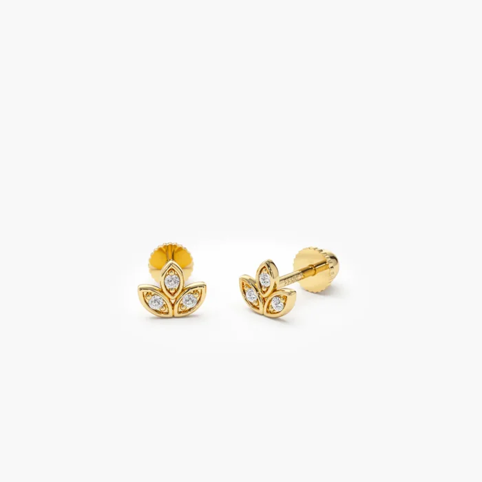 “Elegant 18k Solid Gold Leaf Petal Moissanite Diamond Helix Piercing – a stunning, nature-inspired design with Moissanite diamonds for a unique look.”