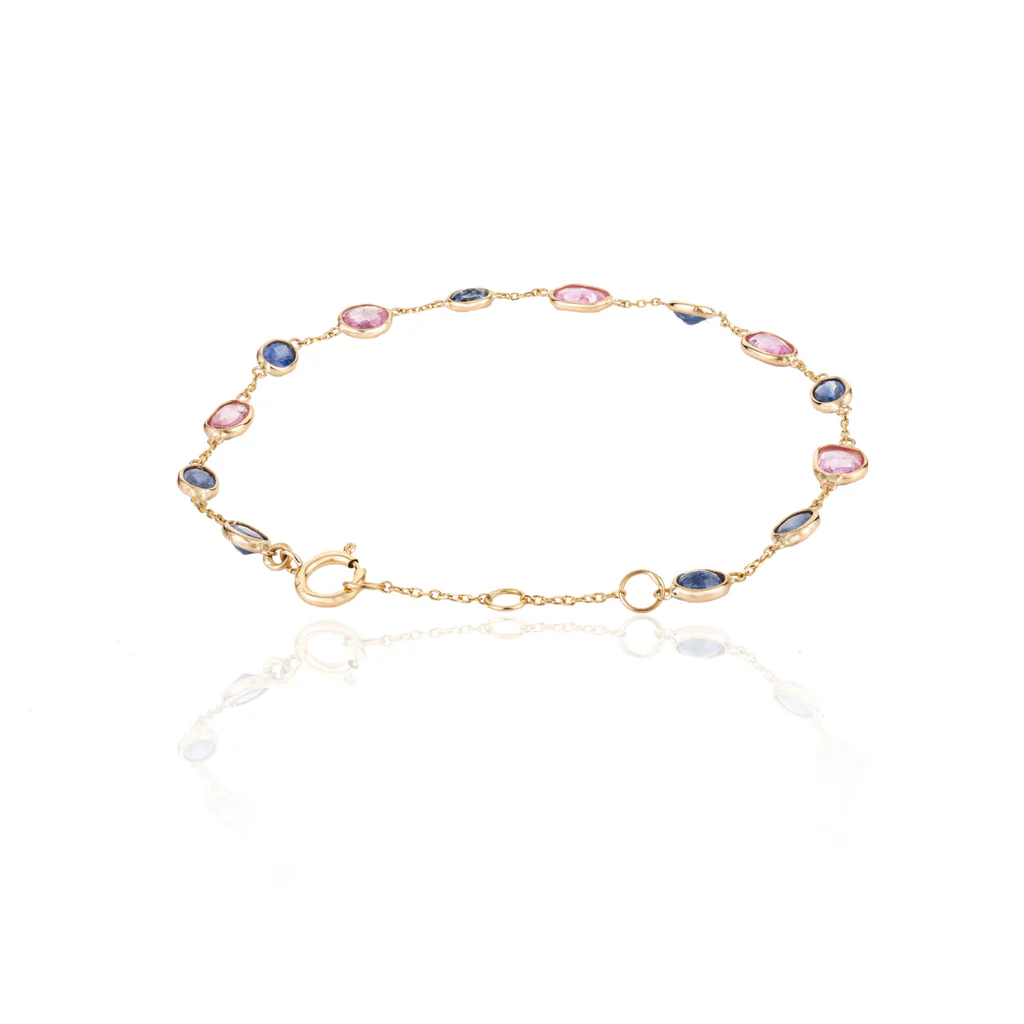 18k Solid Gold Multi-Sapphire Chain Bracelet