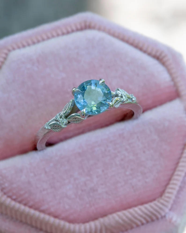 18K Solid Gold Pastel Blue Sapphire Ring Leaf Engagement Ring