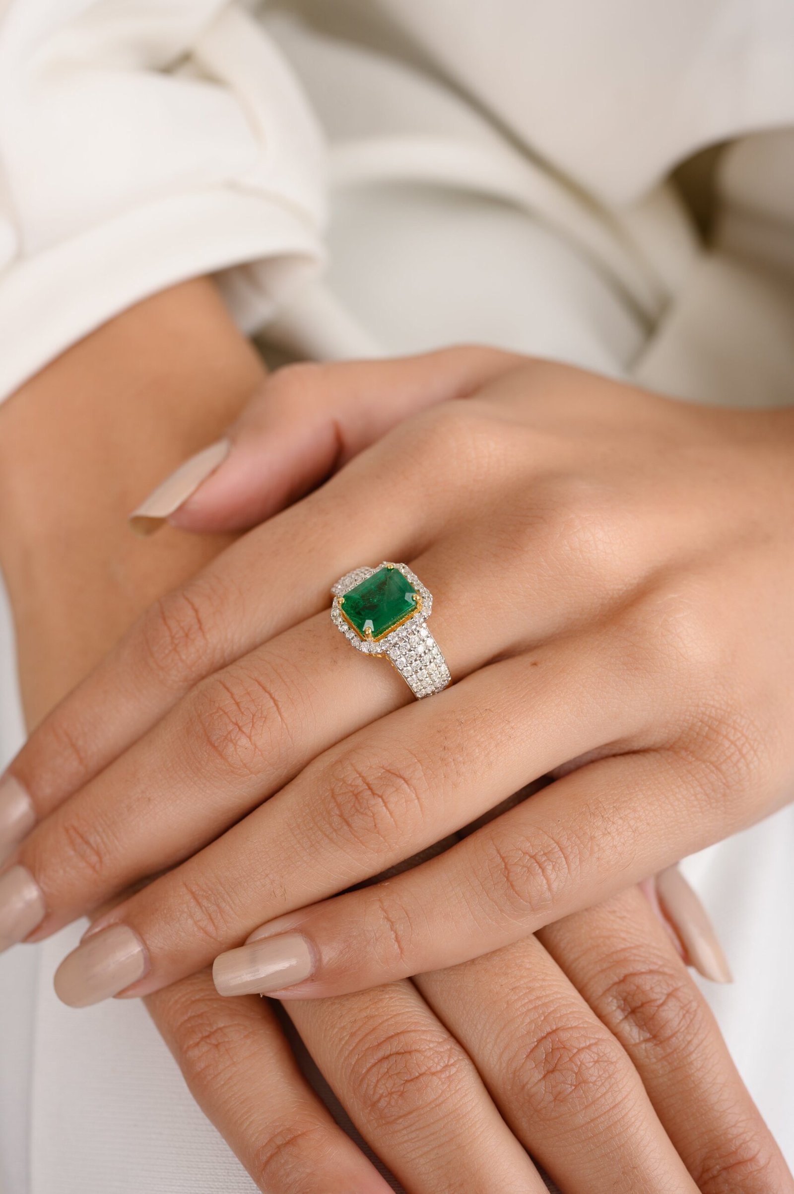 Elevate your style with the 18k Solid Gold Rare Emerald Diamond Solitaire Ring, a luxurious accessory that captures the essence of timeless beauty and elegance.