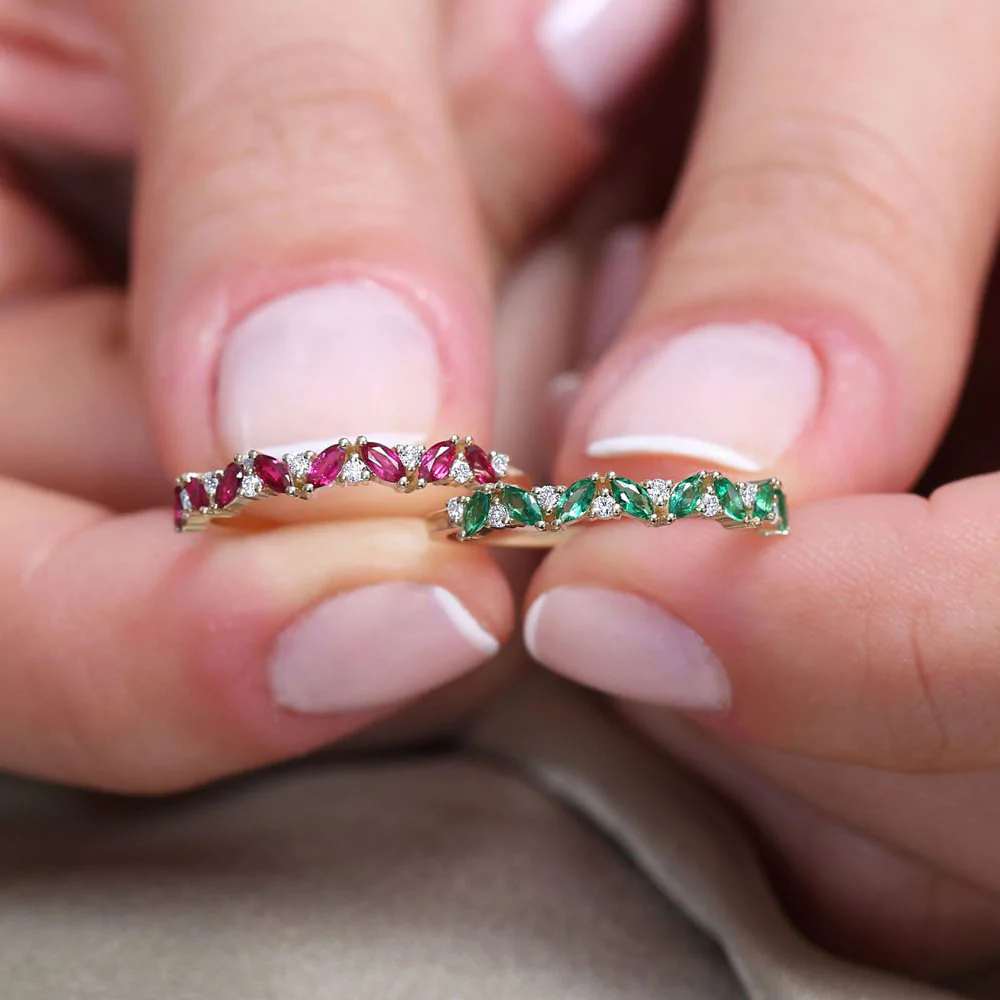Introducing the ravishing 18k Solid Gold Slanted Ruby and Round Diamond Ring: a piece of jewelry that beautifully combines elegance with contemporary flair. Made of high-quality 18k solid gold, this ring comes in white, rose, and yellow gold to suit each personal taste.
