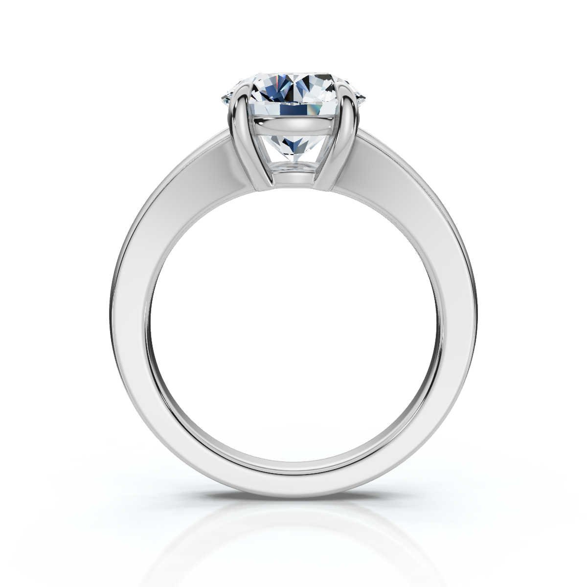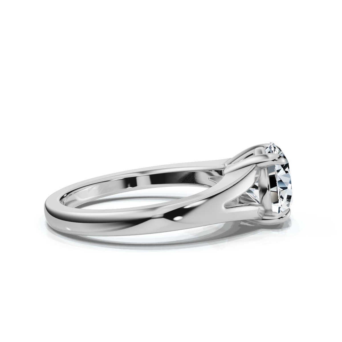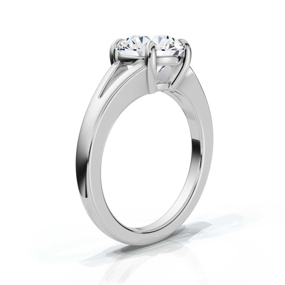 The split shank design adds a sophisticated and contemporary element to the solitaire setting, creating a distinctive look that enhances the stone’s grandeur. Crafted in solid 18k gold (available in White, Rose, and Yellow Gold), the plain metal band offers a sleek and refined finish. With a 2mm width and 1.6mm height, the band is designed for both durability and a comfortable fit.