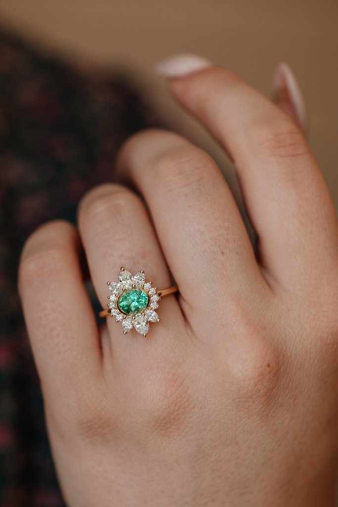 Perfect for any special occasions or as a statement, The Ray Oval Emerald Ring is elegant with a touch of modernism, making it a treasured piece in anyone’s jewelry collection.