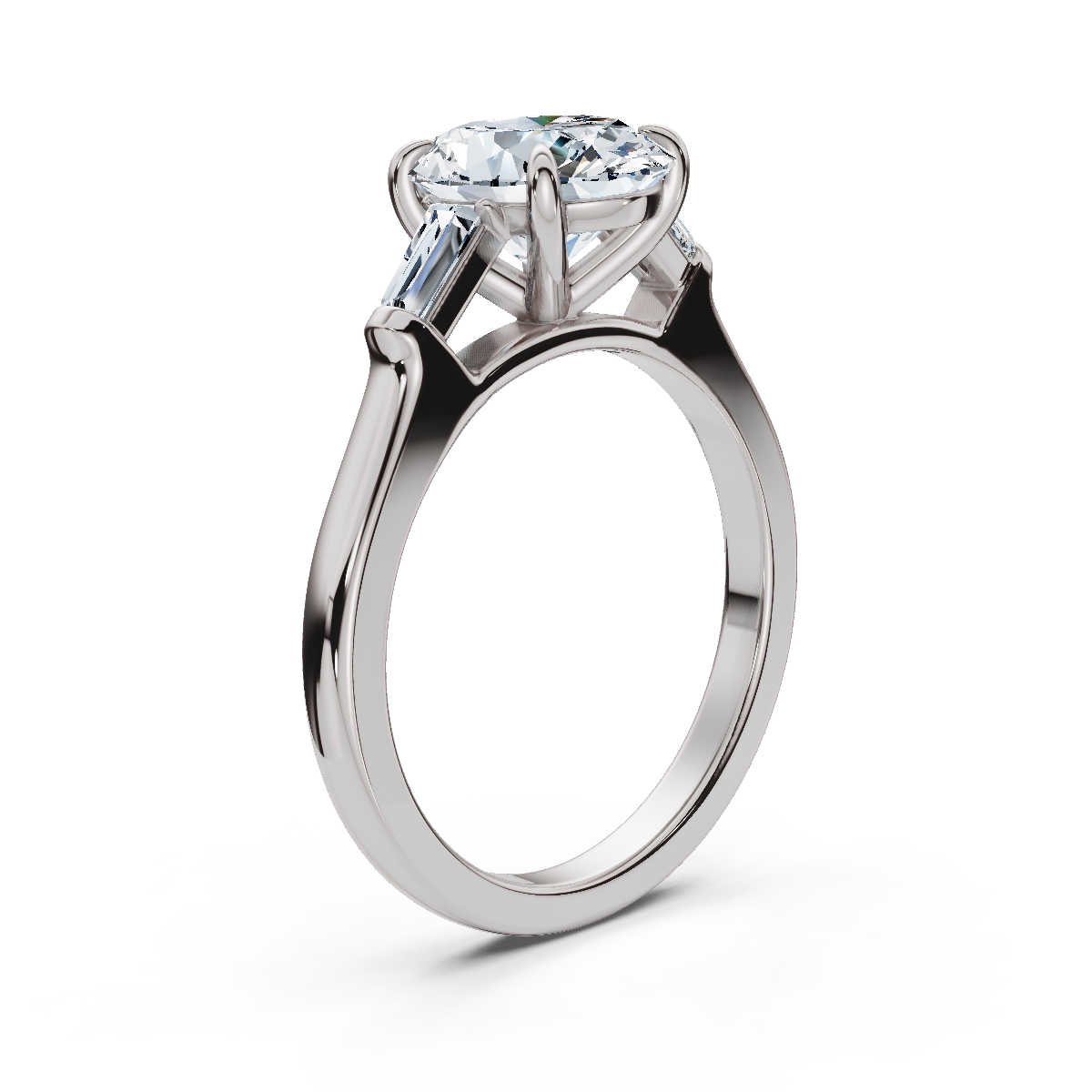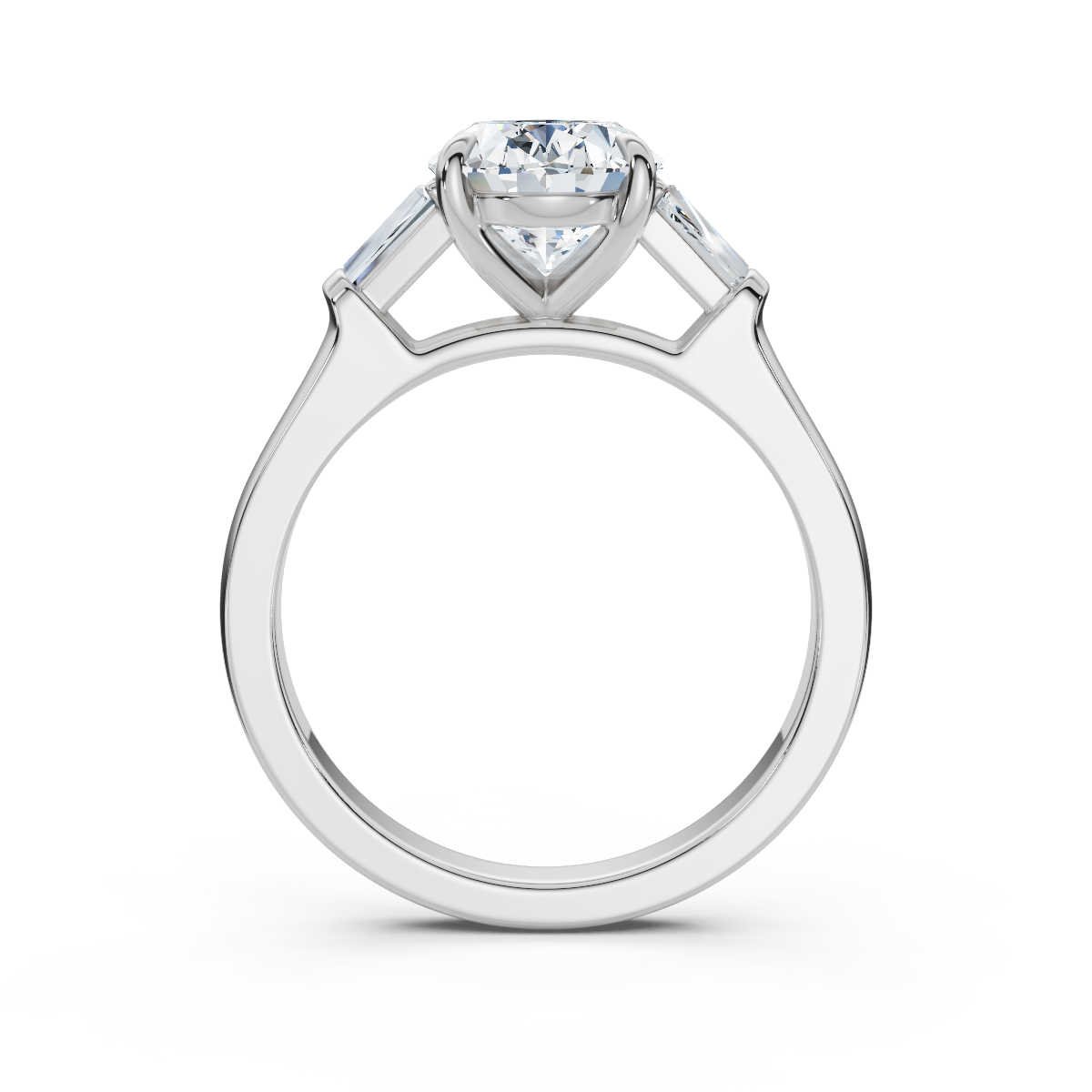 Flanking the center stone are two sleek baguette-shaped lab-grown diamonds, totaling 0.22ct, offering a modern yet classic touch to the design. These baguette diamonds, with their elegant lines, create a beautiful contrast to the rounded curves of the oval center diamond, making it an ideal choice for those seeking a sophisticated and stylish engagement ring.