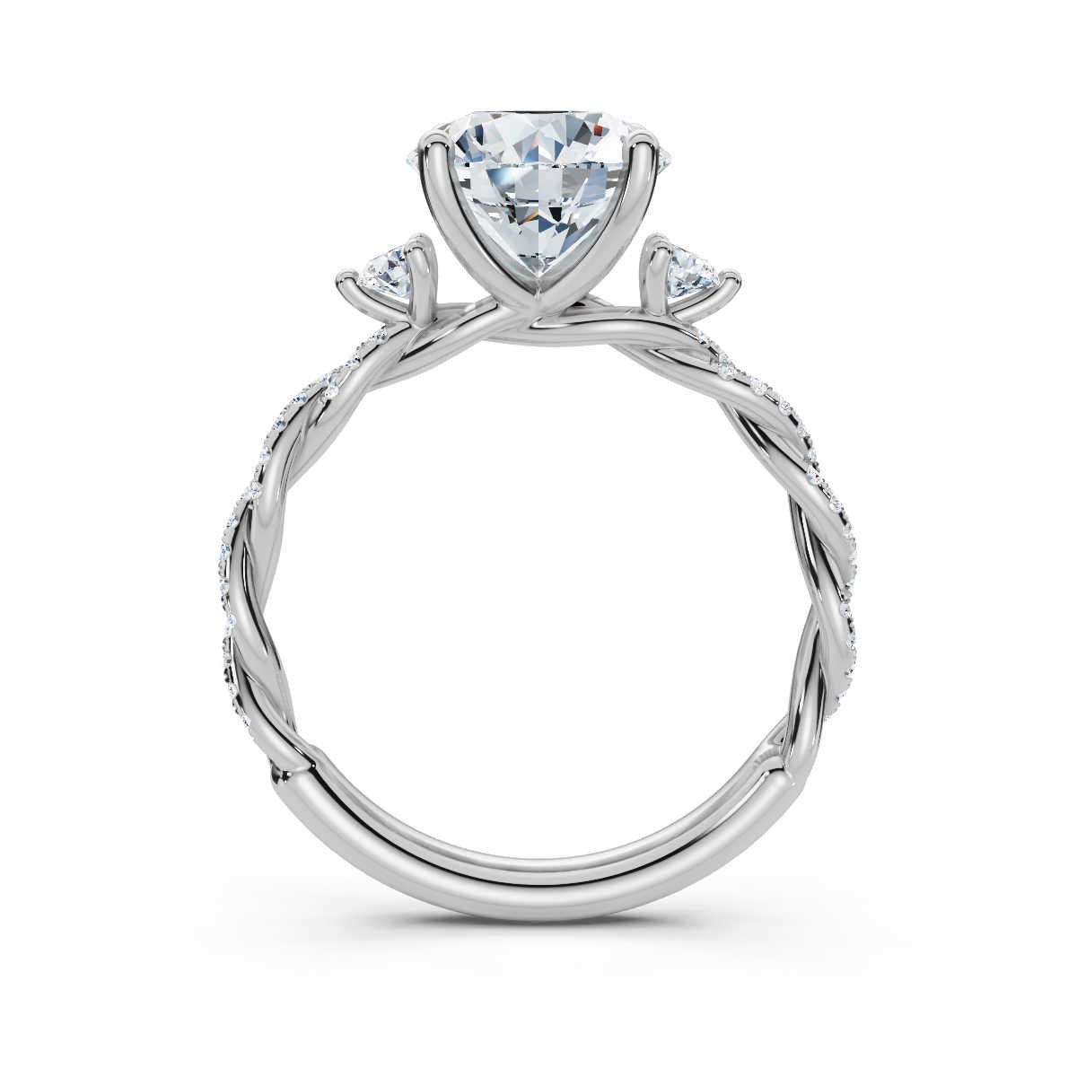 Accentuated by 42 round lab-grown side diamonds with a total carat weight of 0.3ct, this three-stone design symbolizes your past, present, and future together. The diamonds are meticulously set on a sleek 2mm band crafted from 18k solid gold, available in white, rose, and yellow gold. With its plain metal finish and no rhodium plating, the ring retains its authentic gold elegance and charm.