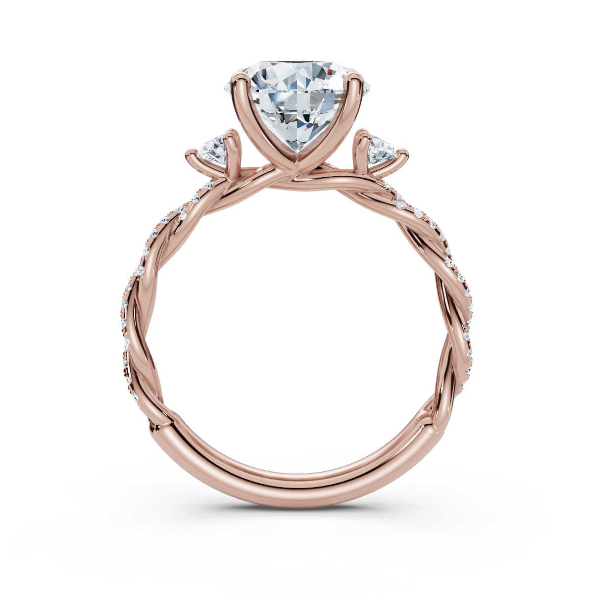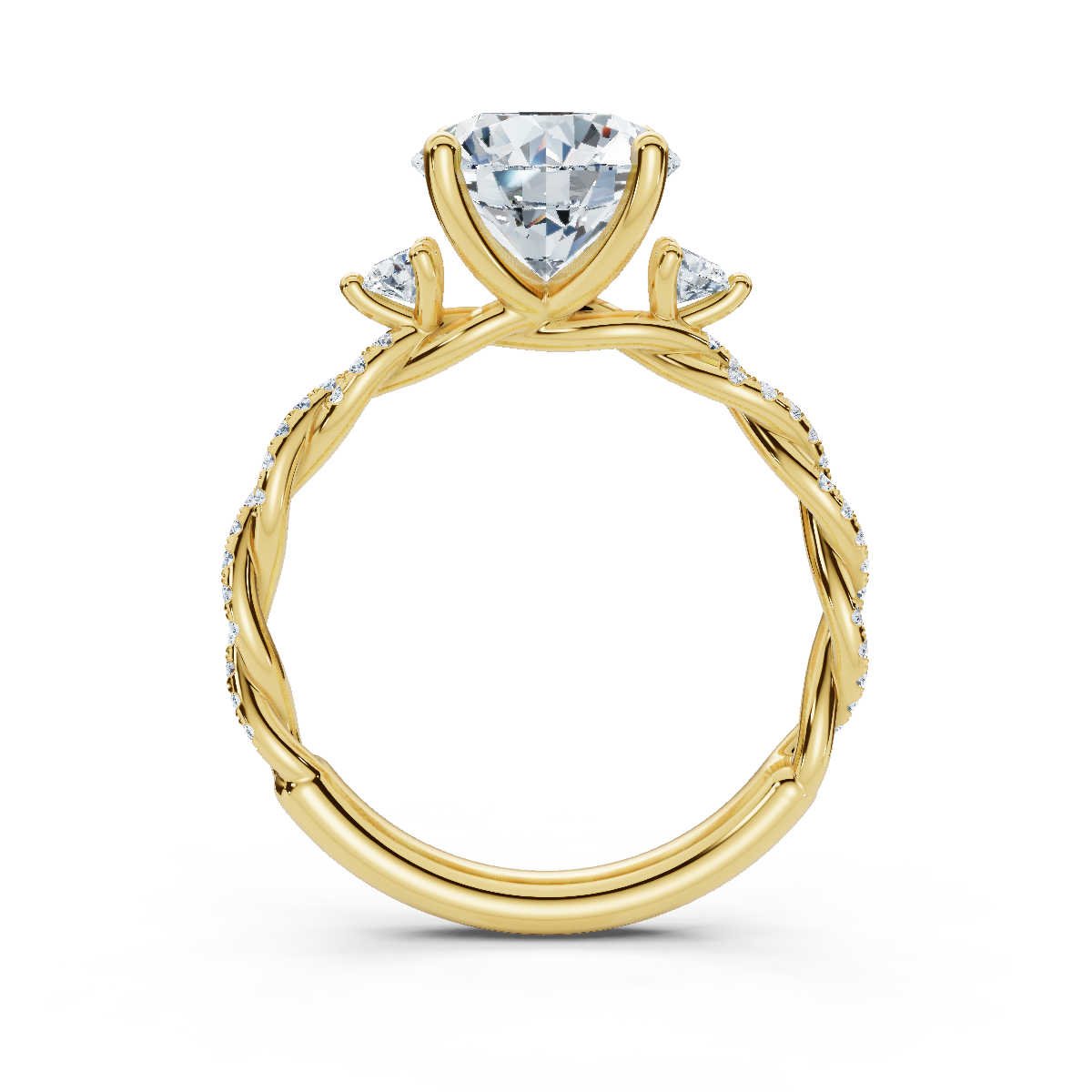 18k Solidd Gold Three Stone Round Lab Grown Diamond Engagement Ring