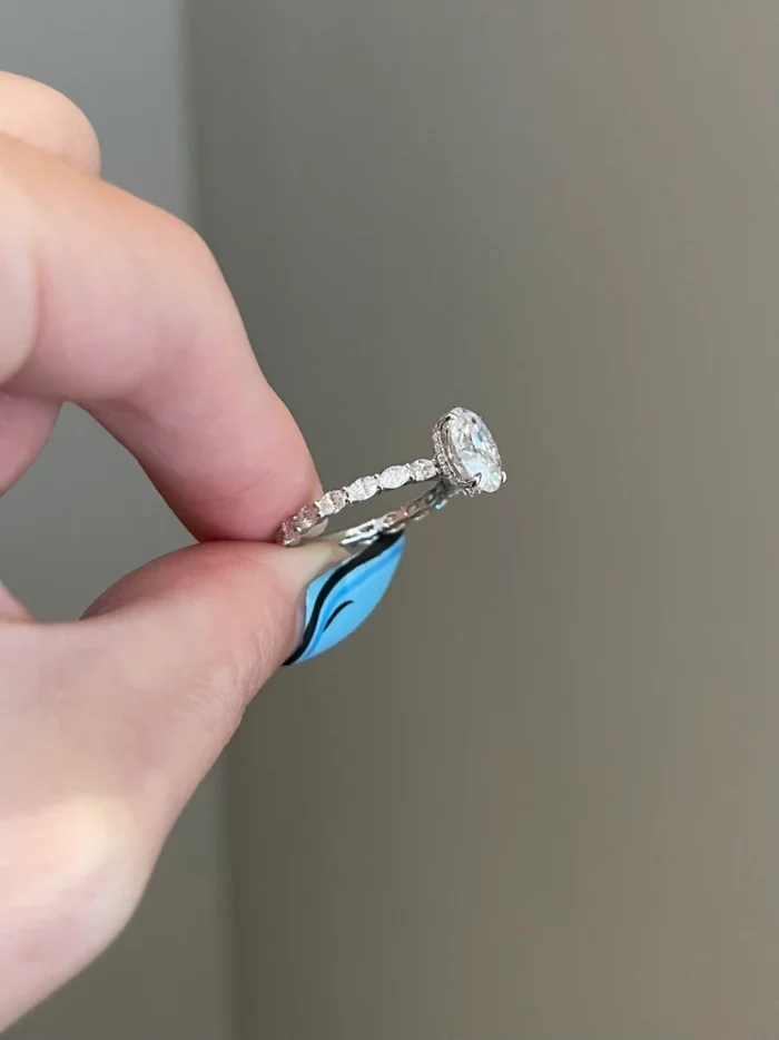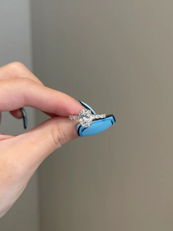 This 2ct brilliant oval cut moissanite engagement ring showcases radiant fire and graceful design—ideal for a classic, elegant, and unforgettable proposal.