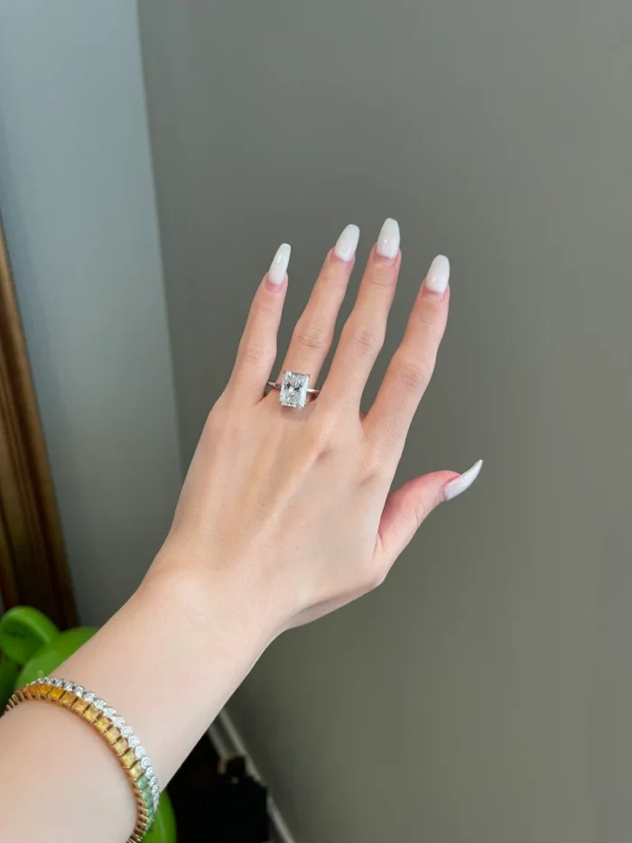 This 7 carat radiant moissanite solitaire ring shines with bold brilliance and classic elegance—perfect for making a luxurious, lasting statement of love.