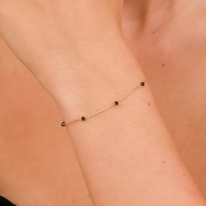 Handcrafted with care, this bracelet showcases the beauty of natural black diamonds, each one carefully cut and polished to enhance its unique shine. The dainty chain, crafted from 14k solid gold, provides the perfect setting for the diamonds, allowing them to shine brightly with every movement.