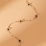 Elegant 14K solid gold black diamond station bracelet, featuring a series of sparkling black diamonds set in a sleek, minimalist design for a chic, sophisticated look.