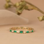 The Diamond and Baguette Emerald Eternity Ring is simply beautiful. It’s elegant and the emeralds add a unique touch.