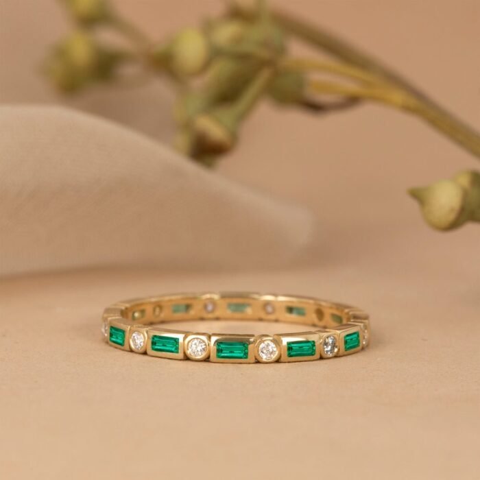 The Diamond and Baguette Emerald Eternity Ring is a wonderful addition to my jewelry collection. It’s stylish and well-made.