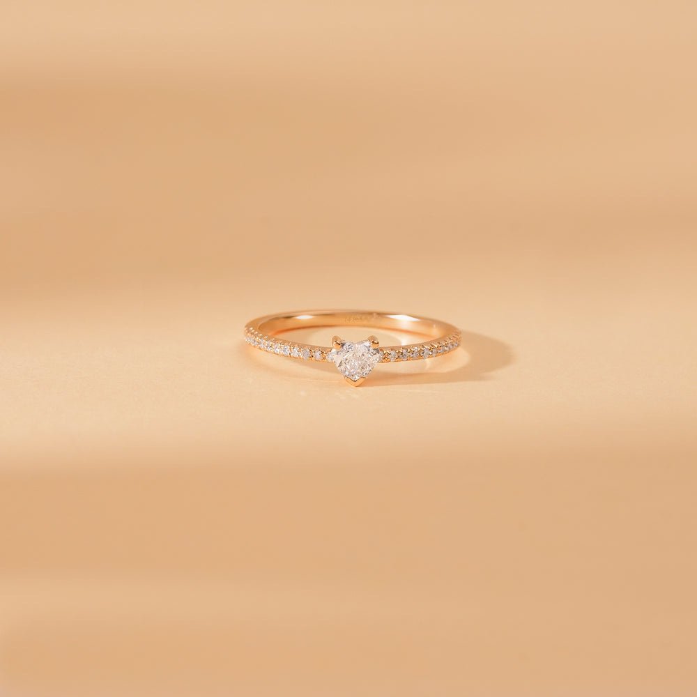 14K gold heart and diamond half eternity ring with GH/VS-SI diamonds. Romantic, stackable, and GIA certified.