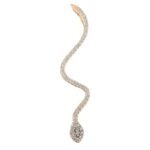 Discover the allure of our 14K Solid Gold Diamond Serpent Snake , a striking embodiment of elegance and mystique. Expertly crafted from 14K solid gold, this pendant showcases a captivating serpent motif that symbolizes transformation and rebirth. Its sleek, sinuous form is adorned with 48 brilliant-cut diamonds, totaling 0.235 carats, meticulously set to enhance its shimmering allure.