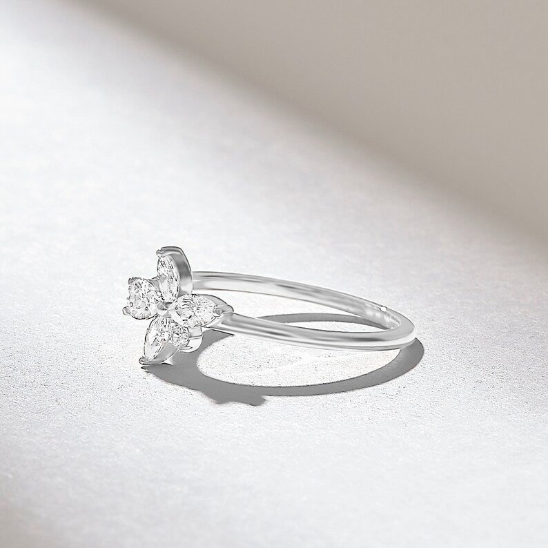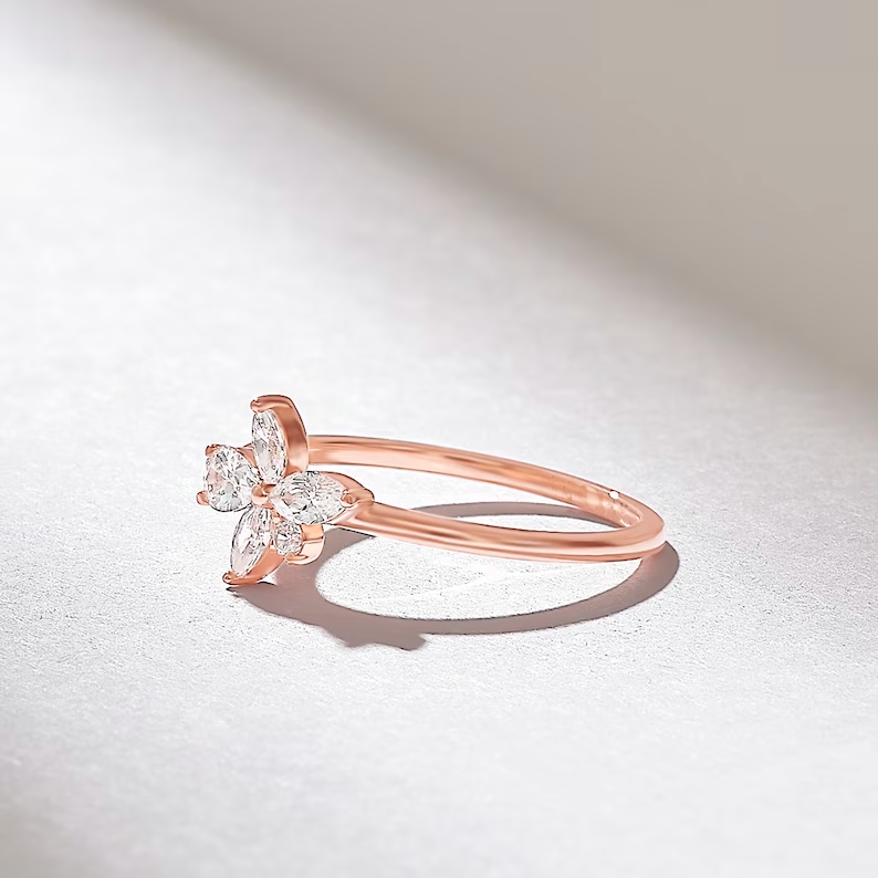 Available in White, Rose, and Yellow Gold, this promise ring can be tailored to match personal styles and preferences. Whether gifted as a meaningful token of love or chosen as a stylish self-expression, this flower-inspired ring is both romantic and refined.