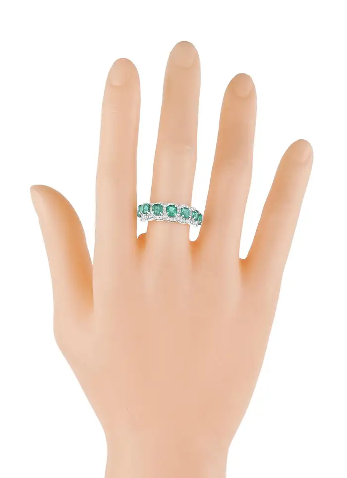 The striking emerald paired up with shimmering diamonds will always show a harmonious balance creating attention and admiration. Wearing it as an engagement, cocktail ring, or adding shine to your everyday outfit will forever make it stand out in attention.